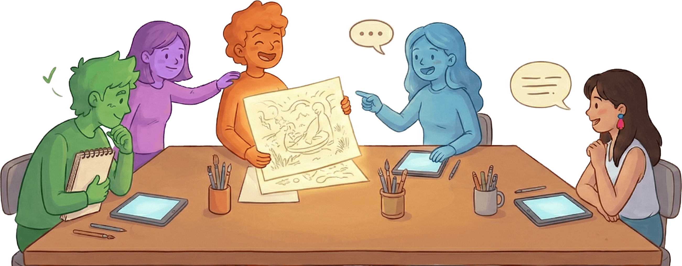 We facilitate studio calls, reflect what we see in your relationship to your project, and ask questions that crack things open. We create the conditions for your best work to emerge.